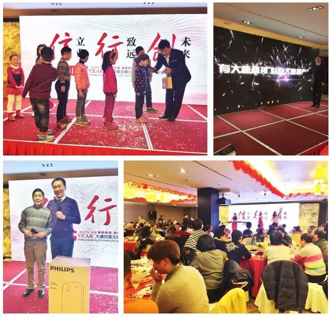 1月24日,无锡分公司在瑞雅大酒店举行了新春客户答谢盛会。大唐财富副总裁张家祥对所有光临的客户表示热烈的欢迎和衷心的感谢,并展望了对2016年的美好愿景。晚会现场激情澎湃,其乐融融,既有沙画表演和炫酷的近景魔术,又有令人屏息的激光舞。在欢声笑语和满满的信任与祝福中,活动圆满落幕。