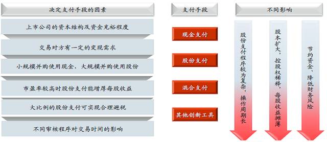 上市公司市场化并购中,支付手段的选择通常需考虑交易规模、上市公司状况、交易对方需求、操作的可行性等多方面因素。同时,支付手段的不同,使得并购对上市公司的财务状况、股权结构、未来经营也会产生不同影响。
