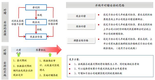 采用假设开发法、收益法估值作为定价依据的,如交易对方属于无关联的第三方,则可不要求业绩补偿。出于控制投资风险、兑现目标公司估值的角度,上市公司通常的做法是作出对赌安排。