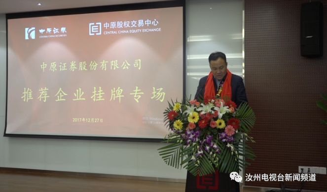 挂牌仪式上,姚军柱简要介绍了我市经济社会发展情况,他说,汝州市委、市政府高度重视企业改革创新、挂牌上市工作,主动做好协调服务,支持、鼓励中小企业在资本市场领域改革创新。目前,我市有13家企业进入省定重点上市后备企业资源库,15家企业进入省新三板上市后备企业资源库,22家企业在中原股权交易中心展示。今后,我市将持续加大对企业挂牌上市工作的支持力度,帮助更多的优质企业在中原股权交易中心挂牌展示。