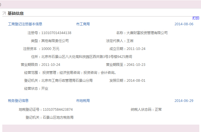 2014年5月,股东决定对大唐财富进行增资。2014年8月1日,大唐财富投资管理有限公司完成工商变更,注册资金由5,000万元增加至10,000万元。