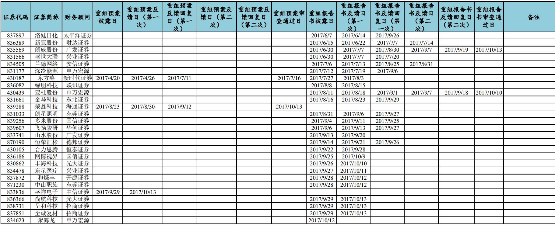 二、《审查进度表》主要对挂牌公司重大资产重组审查的时间进度进行了全面披露,涵盖首次信息披露审查、重组备案审查等各个环节,做到了全流程公开,进一步提高了重大资产重组审查的透明度。