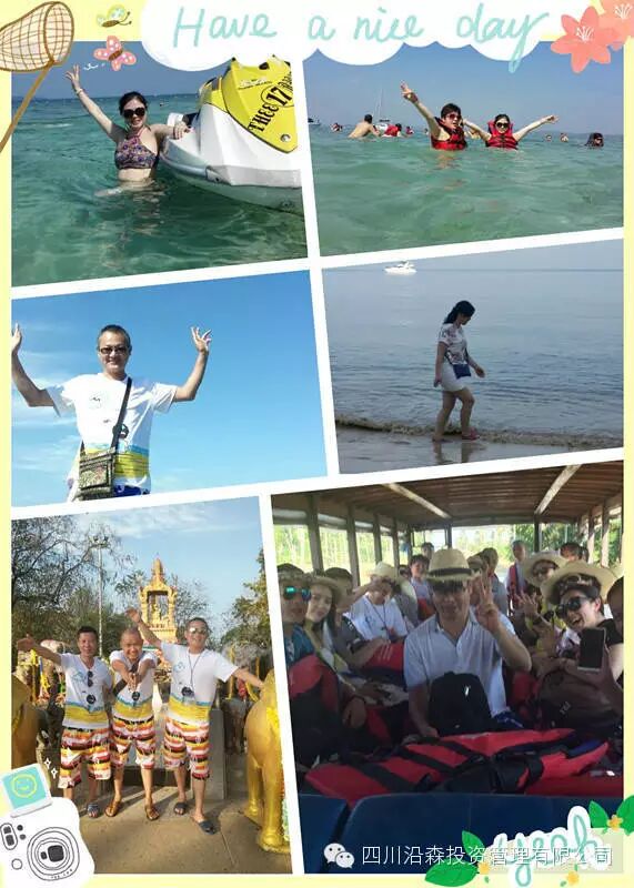 2016年3月4日--3月10日,四川沿森投资管理有限公司集团工会组织员工进行了泰国考察学习活动。这次六天五夜的旅行地选择了泰国最美丽的岛屿之一---普吉岛,它位于印度洋安达曼海东北部,离泰国首都曼谷867公里,是泰国境内唯一封为省级地位的岛屿,有着深远的历史和文化,被誉为安达曼海的明珠。在这里,你可以忘记工作中的压力,忘记生活中的苦恼,敞开双手尽情的去拥抱属于你的普吉,将一切的不美好抛掷脑后,接下来,你需要的就是尽情的享受这里的阳光、海水、沙滩......