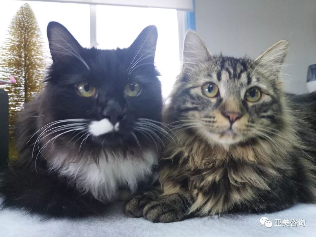 图为亚美吉祥物(辟邪瞄小黑黑、招财喵小灰灰)