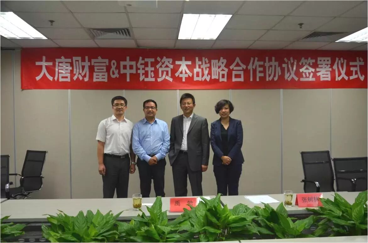 9月1日,大唐财富与中钰资本管理(北京)有限公司(以下简称“中钰资本”)在大唐财富总部签署重要战略合作协议。中钰资本董事长兼合伙人禹勃、董事总经理吴雪征、大唐财富董事长张树林和副总裁许小桐一同出席了此次战略合作协议签署仪式。