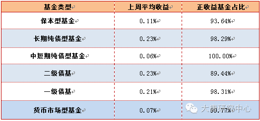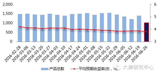要点: 1、上周资金面初现紧张态势,央行也随之加大了资金投放力度,连续五日累计投放3400亿元,维稳利率意图明确。年中流动性虽有波折,但风险总体可控,勿需过分担忧。 2、上周全部银行理财产品平均预期收益率为3.79%,与前周相比下降7个BP。从趋势上看,各银行正逐步缩短资金期限,降低付息成本,理财产品收益由“负债驱动”转到“资产驱动”。 3、上周新发行信托产品平均收益为6.49%,较前周6.59%继续下滑。其中预期收益收益率最高的产品是“天顺2422号”,预计年收益率9%。 5、上周偏债类公募基金普获正收益,大部分类型正收益数量占比都在90%以上。脱欧危机爆发后,全球债券市场迎来大狂欢,债基预计未来仍有收益空间。 流动性保持充裕 上周央行在公开市场继续放量,每天公开市场分别净投放600亿元、350亿元、850亿元、300亿元、1300亿元,由此上周公开市场累计净投放3400亿元,创近5个月新高。 【上周资金面初现紧张态势,央行也随之加大了资金投放力度,连续五日累计投放3400亿元,维稳利率意图明确。预计在央行的扶助下,年中流动性虽有波折,但风险总体可控,勿需过分担忧。】 图1、资金价格波动情况 银行理财平均收益再度下行 收益再度下滑。上周全部产品平均预期收益率为3.79%,与前周相比下降7个BP.具体来看,1个月以下期限平均收益平均收益3.17%,其他核心期限中,1-3个月期限维持在3.88%,3-6个期限平均收益在3.73%,6-12个月期限维持在3.7%。 【从趋势上看,各银行加大了开放式理财产品的发行,缩短资金期限,以降低资金成本,减轻银行投资端压力,理财产品收益由“负债驱动”到“资产驱动”。】 图2、不同期限银行理财产品平均收益率对比 发行节奏放缓。上周开始计息的银行理财产品一共有1345款,与前周相比减少100款。按收益类型看, 保证收益型产品193款,平均收益3.31%;保本浮动收益型产品233款,平均收益3.29%; 非保本浮动收益产品806款,平均收益4.13%;其余未公布类型的产品共计113款。 图3、新发行理财产品数量以及平均预期收益率 信托发行规模小幅回升 收益创新低 发行规模小幅回升。从数据上看,上周信托产品新成立一共68款,合计成立规模136亿元,较上周略升,平均发行规模2.2亿元。从产品类型上看,证券投资类产品发行数量为19只,贷款类信托产品6只,债权投资类型类信托7只,组合投资类信托2只,其他投资类信托12只,股权类产品2只。募集规模最大的是五矿信托发行的“中核钛白2016”,募集规模为11亿元,这是一款权益类投资产品。 图4、信托产品周度发行规模 收益创新低。上周新发行信托产品平均收益为6.49%,较前周6.59%继续下滑。68只产品中,只有29只公布了预期收益。其中预期收益收益率最高的产品是“天顺2422号”,实际发行规模5000万元,预计年收益率9%。最低的产品是中航信托发行的“天顺25号”,预计年收益率只有4.5%。 图5、新成立信托产品平均收益率变化 各类型公募固收继续正收益 普获正收益。上周公募基金市场中,固定收益产品普获正收益,从正收益产品数量占比看,各个类型涵盖保本型产品、一级债基、货币基金、偏债混合型基金、长期纯债型基金、中期纯债型基金都在90%以上,二级债基正收益产品略低,只有89%。 从绝对收益看,长期纯债型以及二级债基表现最佳,平均收益为0.23%,一级债基产品平均收益0.21%,位居第二,其他产品平均收益在0.1%附近。 图6、公募固收益产品收益情况