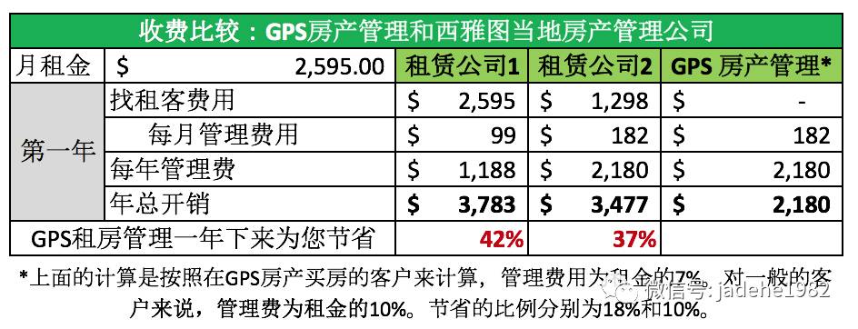 下面是我们GPS房产和其他管理公司的收费比较。而更重要的是,你不用担心租客提前搬走,重新找租客,我们找租客的费用为0。你没有租金收入,我们也不收钱。