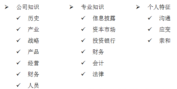 负责投资者关系管理工作,并不是很简单的事情,相关负责人须具有以下素质:
