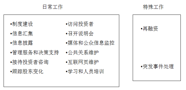 上面有政策,那么大家肯定也都乖乖地建立了《投资者关系管理制度》,负责维护投资者关系的事当然落到证券部的头上。