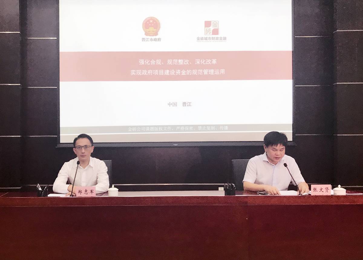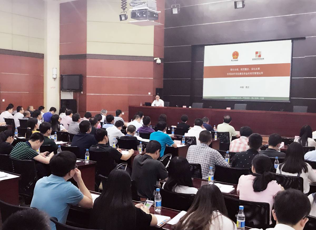 2017年6月20日,福建省晋江市与金砖城市财政金融中心举行“防范财政金融风险、规范政府投资建设资金管理运用”专题讲座,全面贯彻落实六部委《关于进一步规范地方政府举债融资行为的通知》(财预〔2017〕50号)、财政部《关于坚决制止地方以政府购买服务名义违法违规融资的通知》(财预〔2017〕87号)政策要求,防范区域性系统性风险,规范政府投资建设资金管理运用。晋江市市长张文贤主持会议,市政府、市财政局、市发改局、市审计局、市金融工作局等单位负责同志,经开区分管领导,市属平台公司及国有企业负责人参加会议。