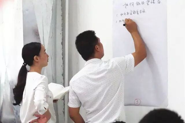 在对销售管理者角色这一内容进行讲解的过程中,韩老师采用问题思考的模式对课程内容进行引入,将各个小组分成不同的销售管理角色,对“销售管理者到底要干些什么”这个问题进行思考。