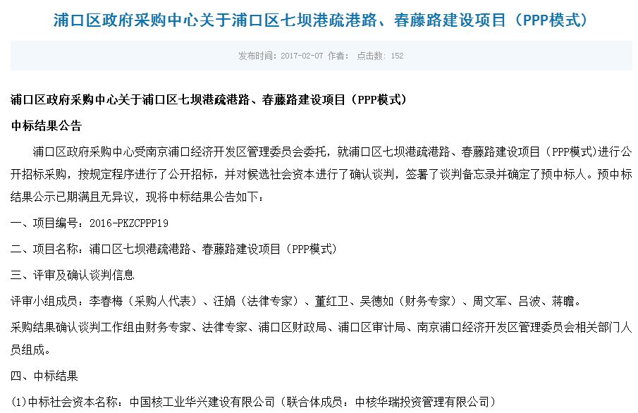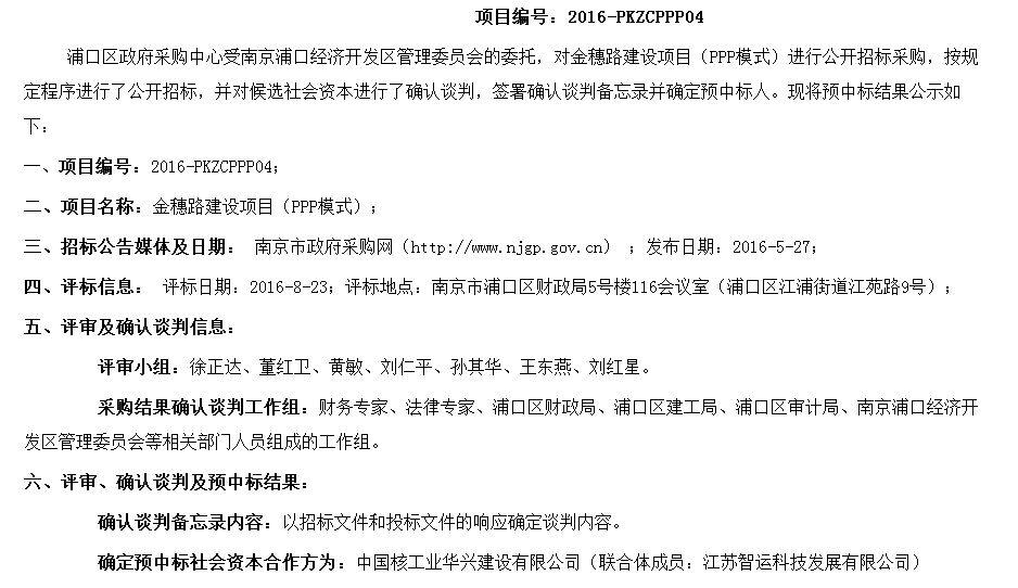 7 | 南京市浦口区金穗路建设PPP项目 | 南京 |